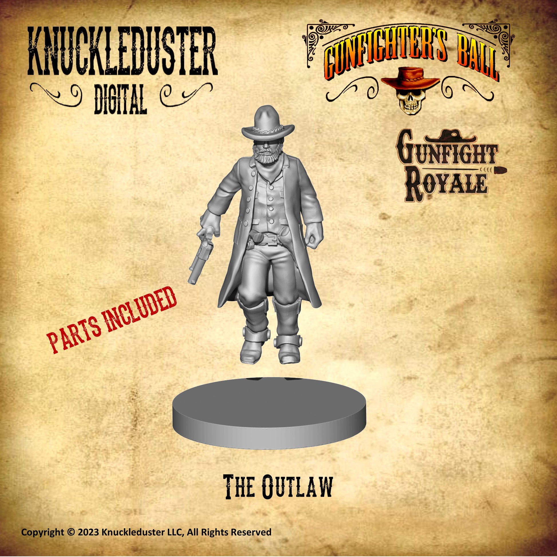 A depiction of Jesse James for Gunfighter's Ball that you can print at home. Includes the figure plus an STL of a basic 25mm x 3mm base that's the same diameter and thickness as our MDF Gunfighter's Ball bases. The scale is an exact match for the Gunfighter's Ball metal cast version.