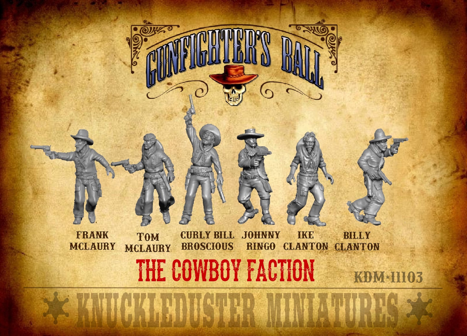 Curly Bill, Johnny Ringo, Billy Clanton, Tom Mclaury, Frank McLaury, and Ike Clanton, and instant gang of cowboys.