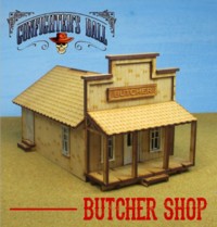 Butcher Shop, which includes plastic detail parts and lots of space for gaming. An interior wall divides the space into two rooms, and the doorway even includes a plastic cast door. Super easy to build. Instructions downloadable from this page.