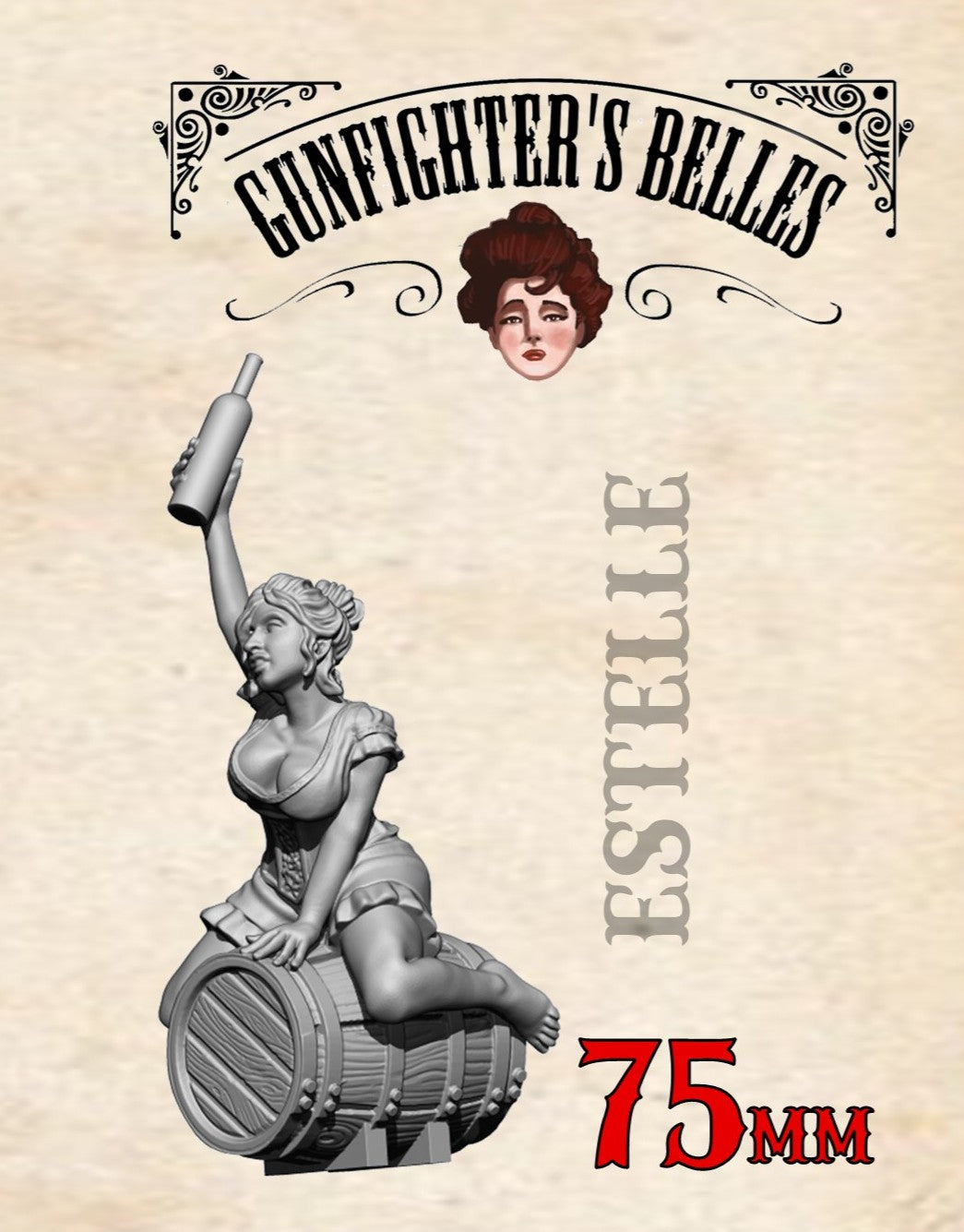 Estelle, a lovely lady from South of the Border. She is one of our Gunfighter's Belles, a line of 75mm resin figures featuring the ladies of Gunfighter's Ball rendered in 1:24 scale.