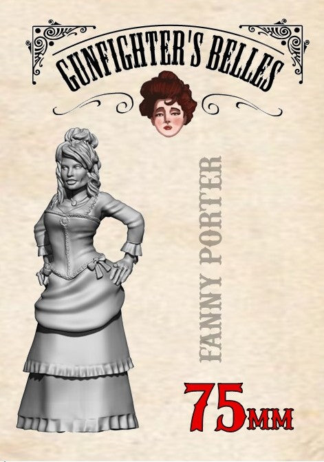 Fanny is the greatest little Madam in Texas! She is one of our Gunfighter's Belles, a line of 75mm resin figures featuring the ladies of Gunfighter's Ball rendered in 1:24 scale,designed for painters.