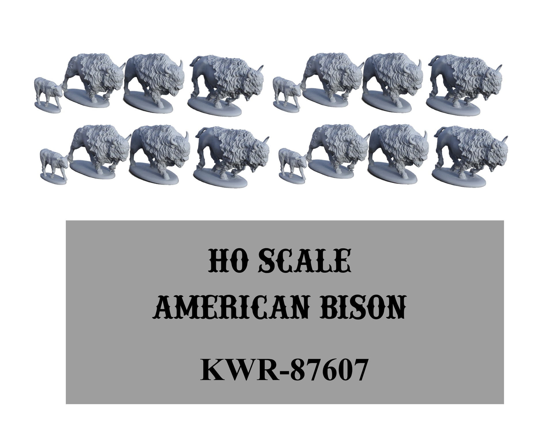 A huge herd of sixteen bison to darken the open range of your Old West model railroad layout.