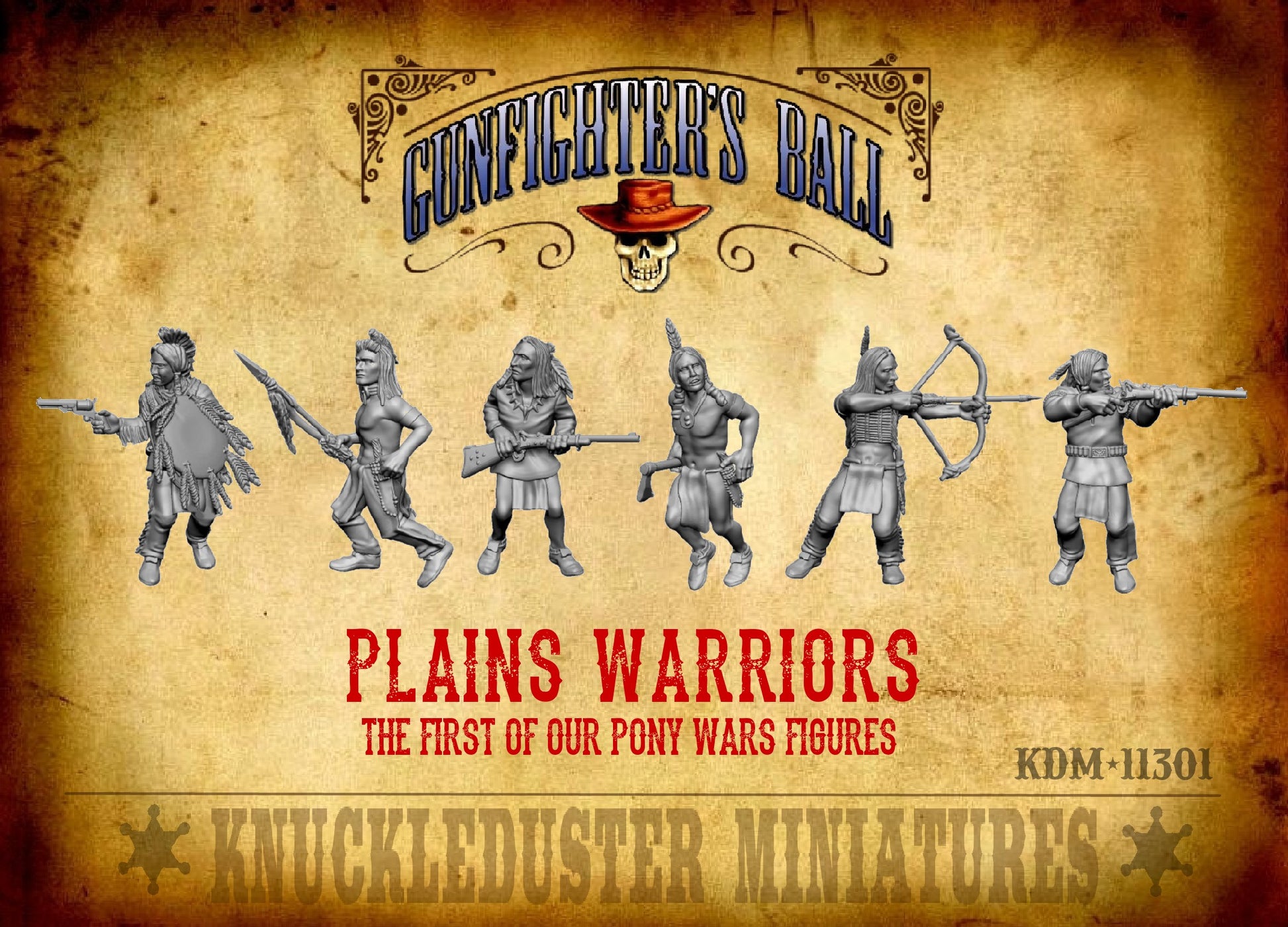 Warriors from the Lakota, Northern Cheyenne, and Arapaho. Dismounted and in fighting poses.