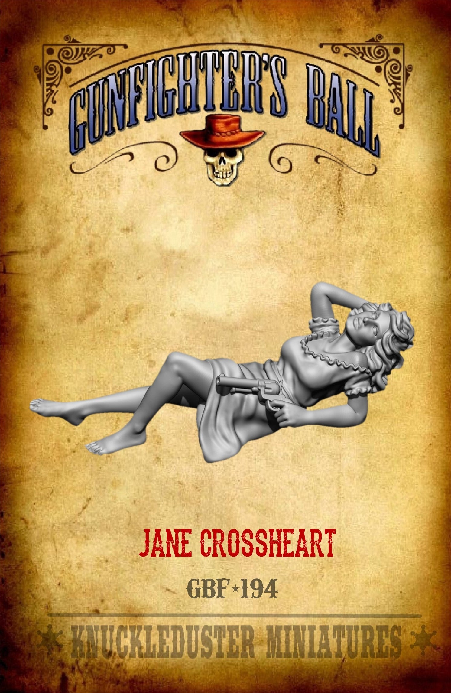 A siren to lure your cowboys to their doom. This figure is reclining and can be positioned on a haystack, sofa, or other suitable piece of terrain.