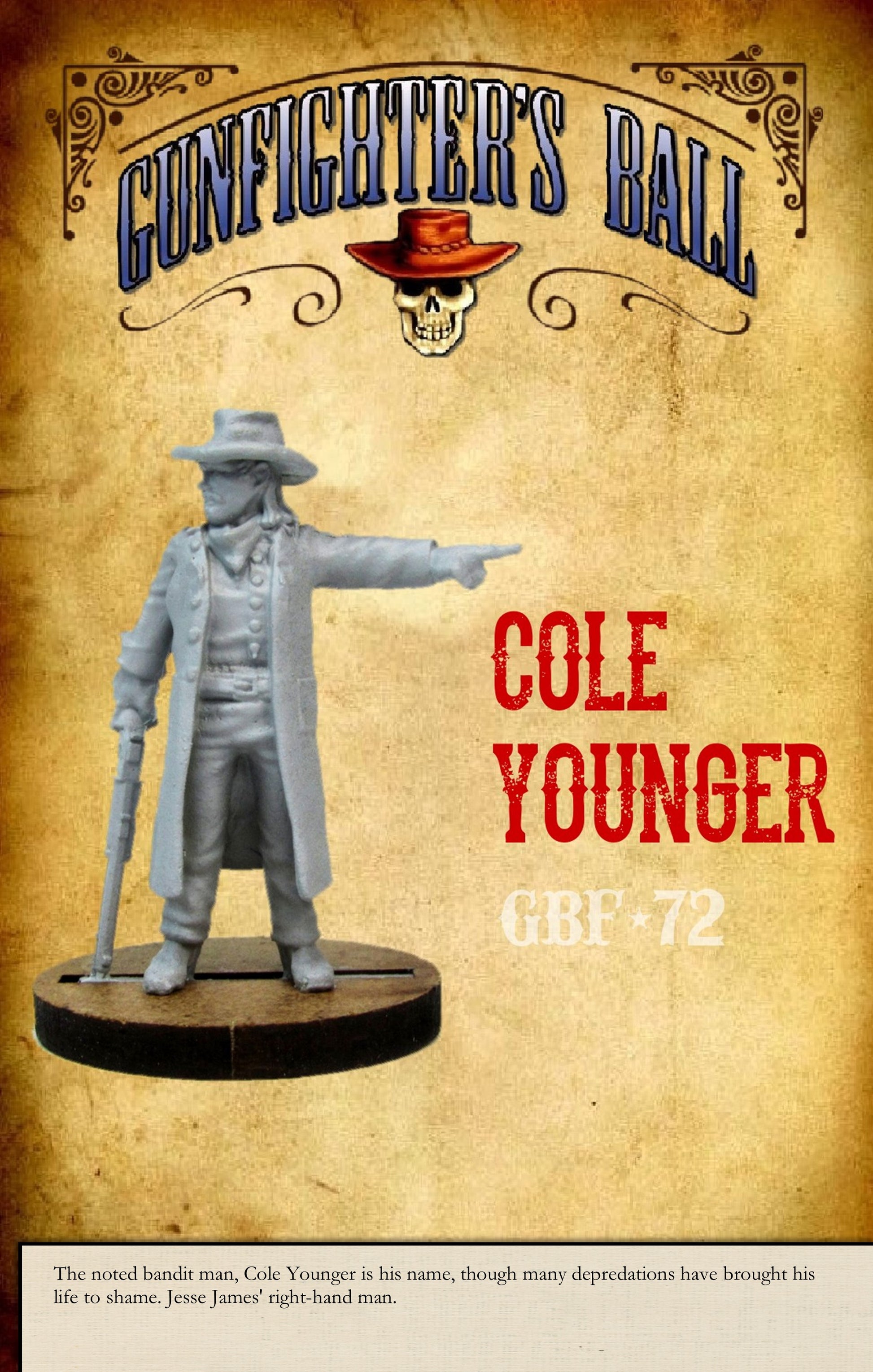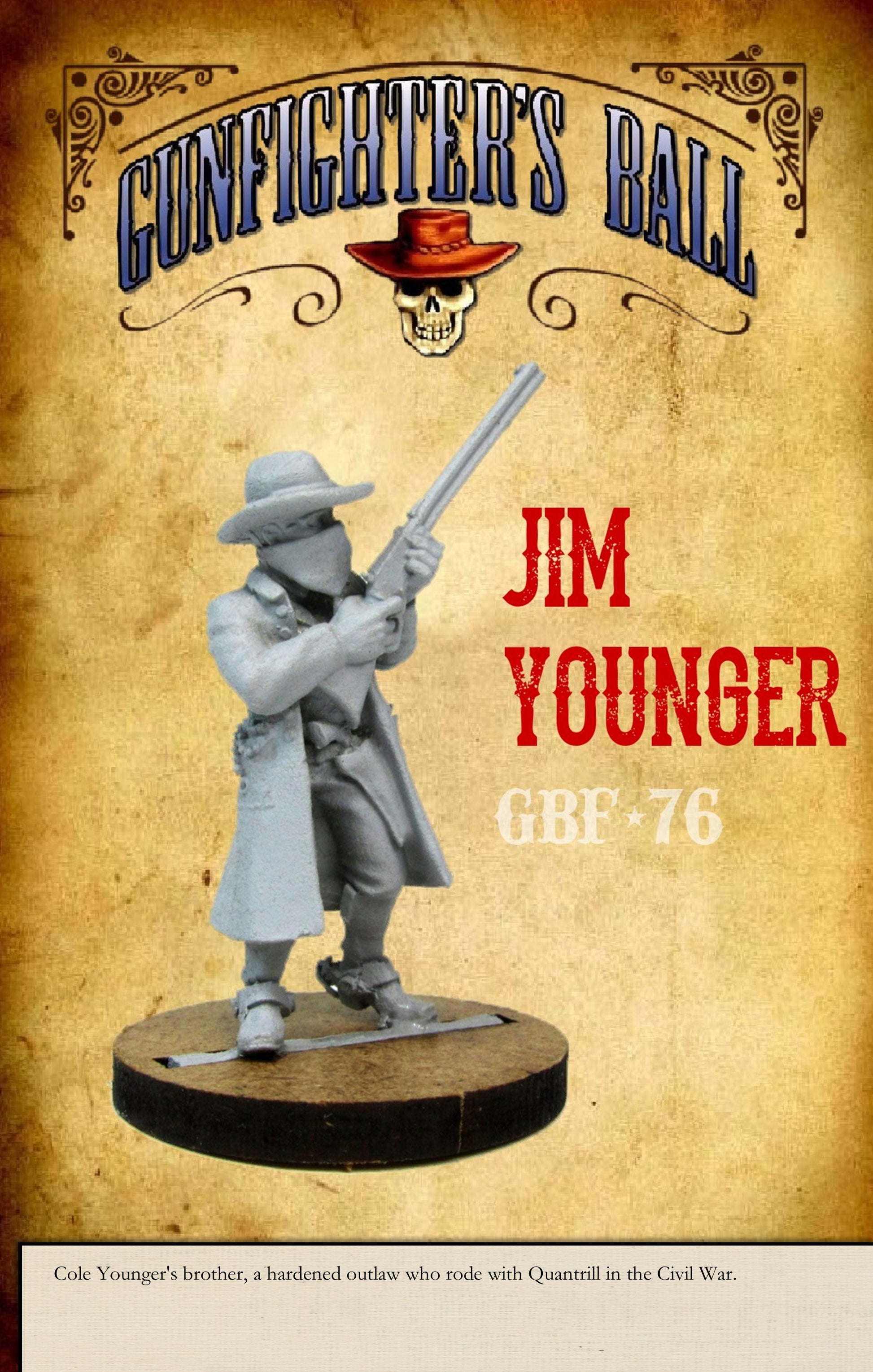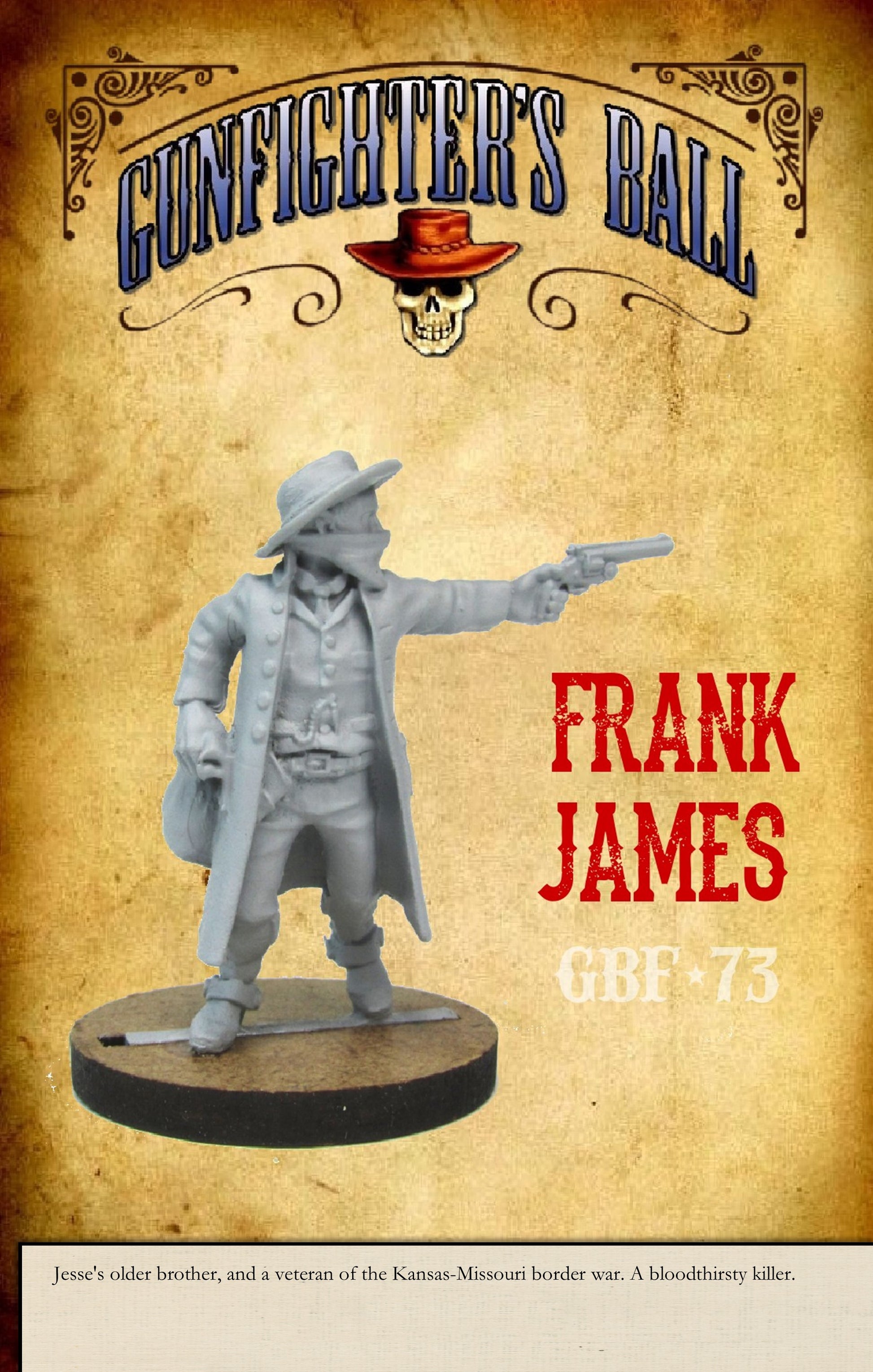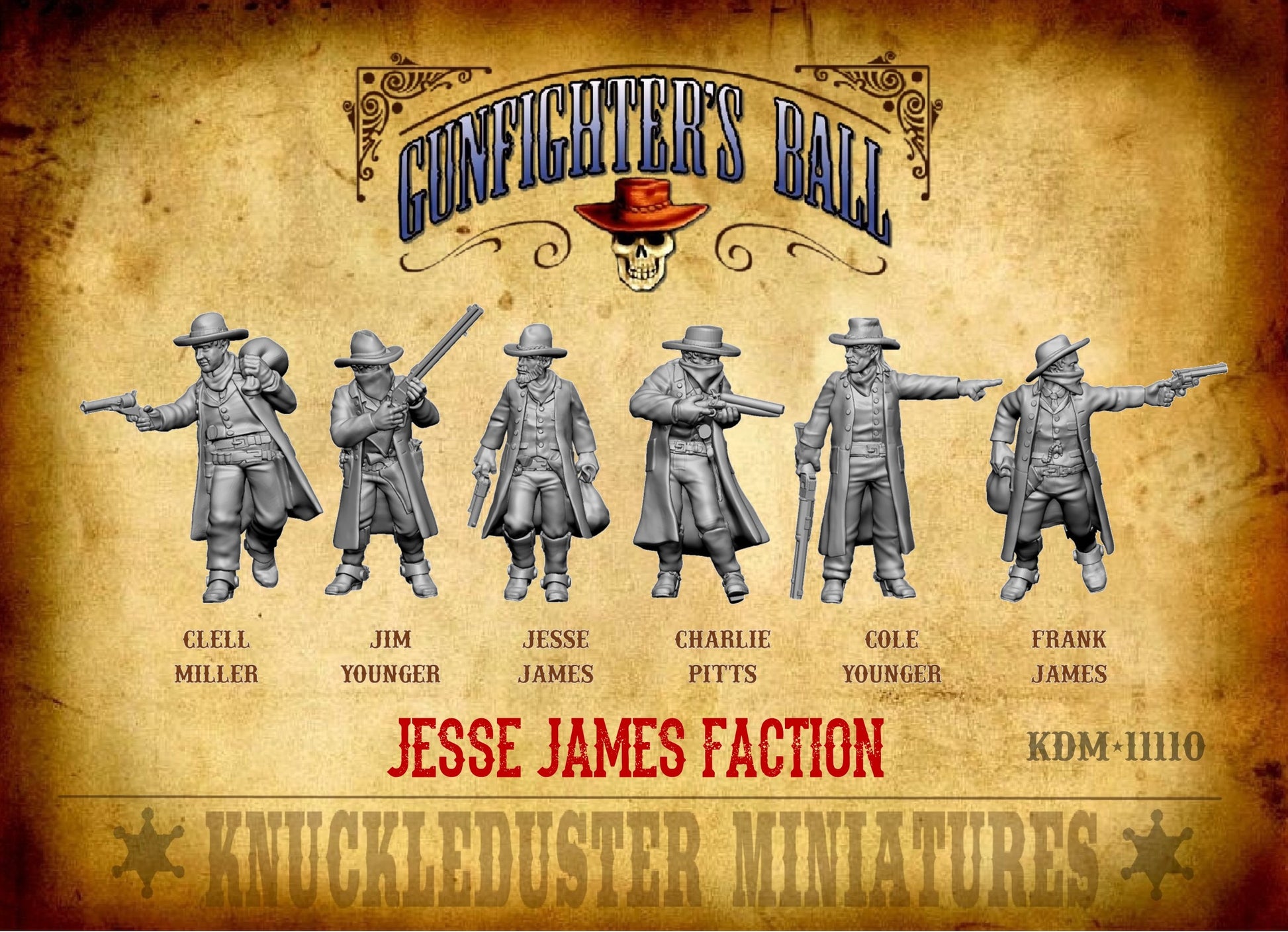 Jesse James, Frank James, Cole Younger, Jim Younger, Clell Miller, and Charlie Pitts. Can be used for any similar gang, such as the Daltons.