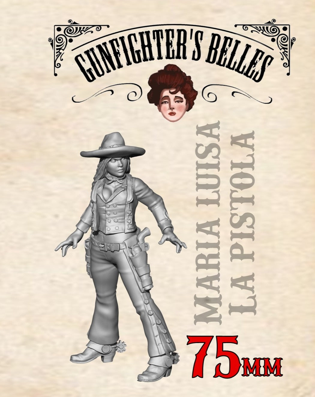 Maria Luisa is one of our Gunfighter's Belles, a line of 75mm resin figures featuring the ladies of Gunfighter's Ball rendered in 1:24 scale designed for painters.