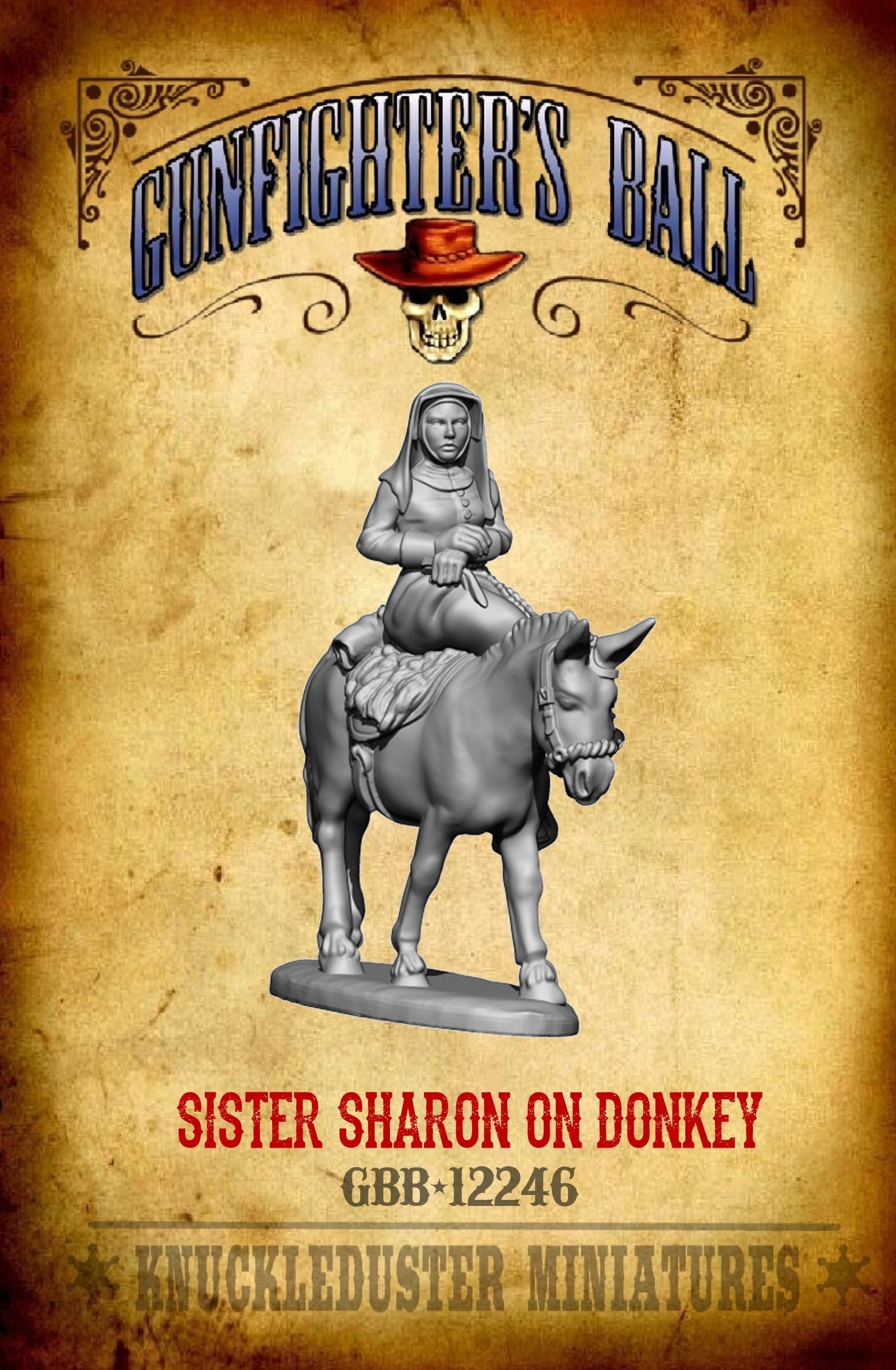 Sister Sharon on her trusty burro. Includes rider and animal.