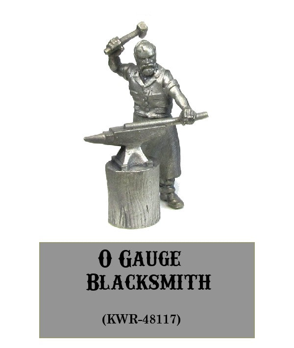 Two-piece model includes figure of the blacksmith and an anvil on a stump.
