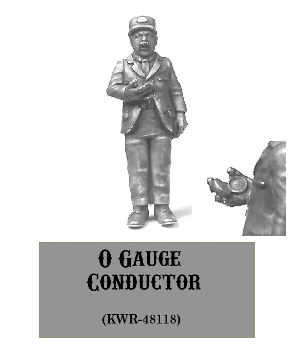 A conductor with the badge of honor in his profession, his railroad timepiece (see closeup).