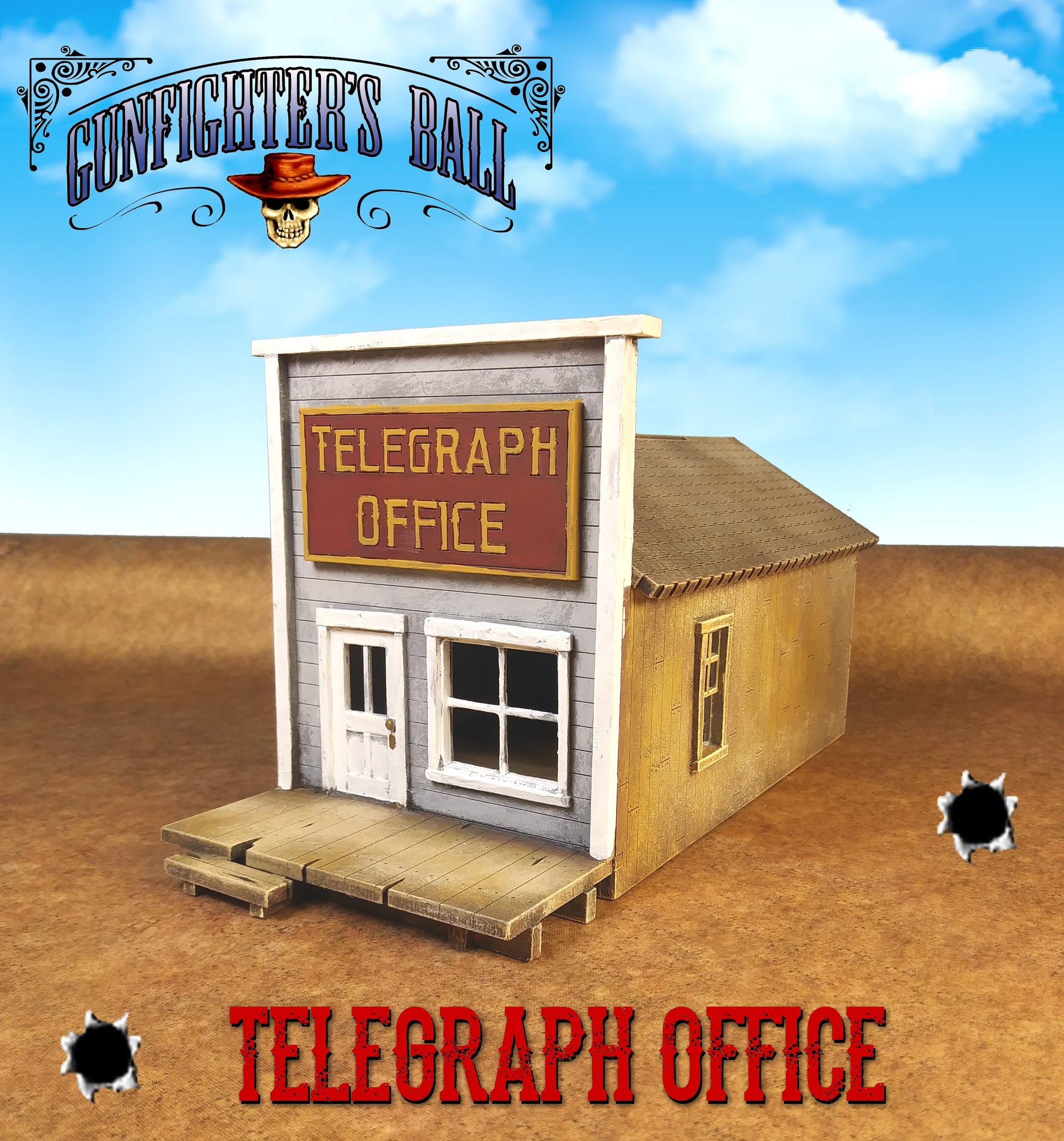 A small false-front building for your town. It comes with a Telegraph Office sign, but can be used for any narrow commercial building, from post office to assayer.