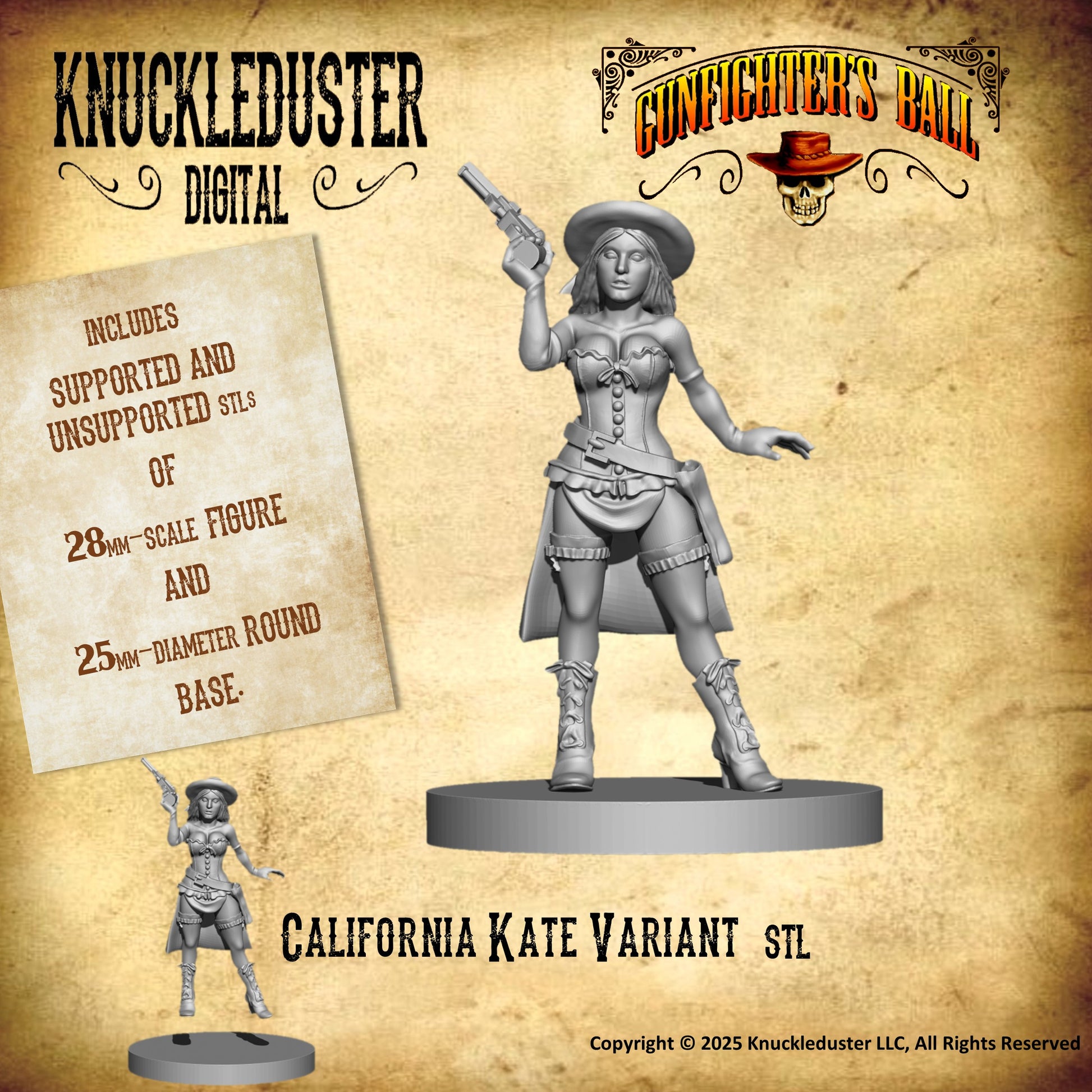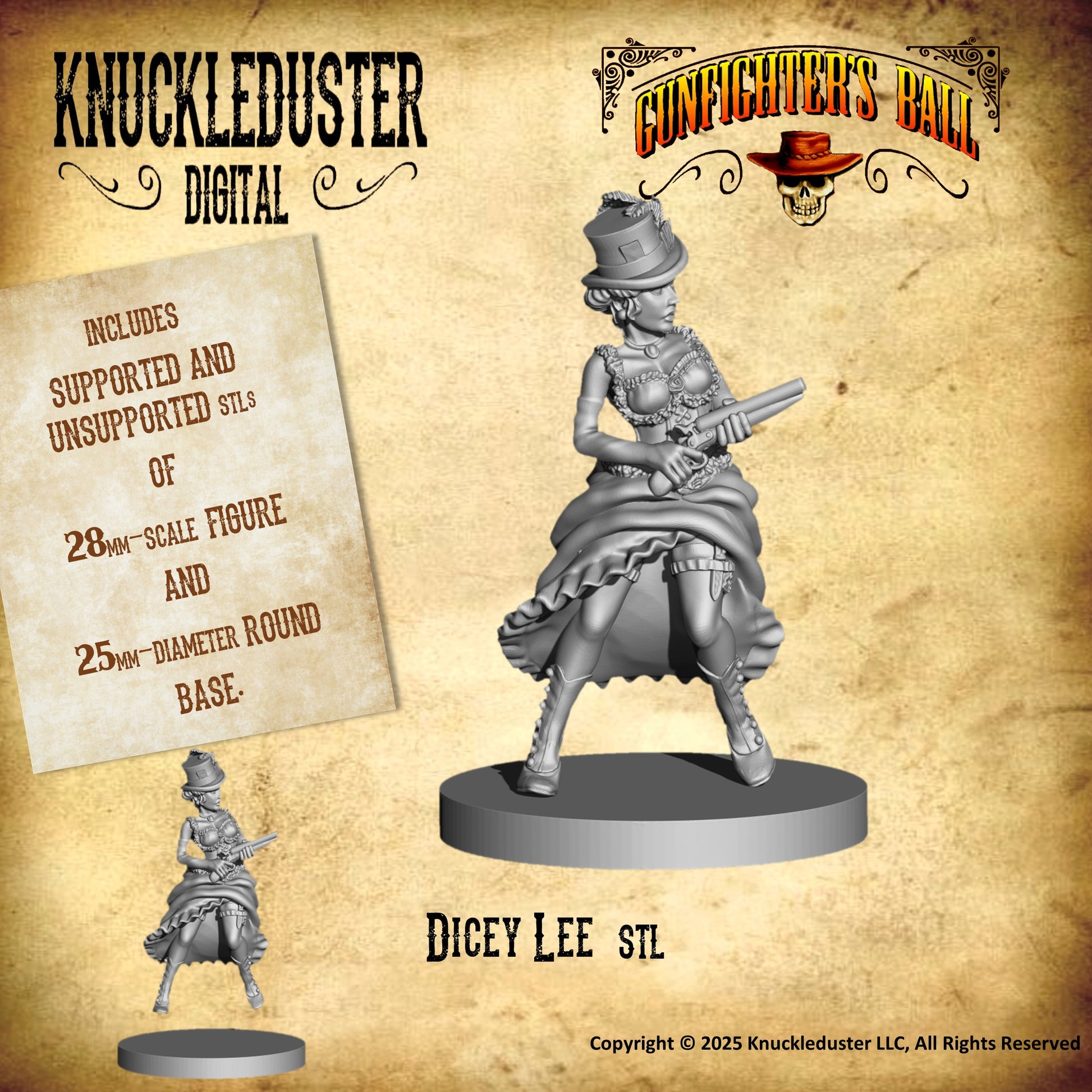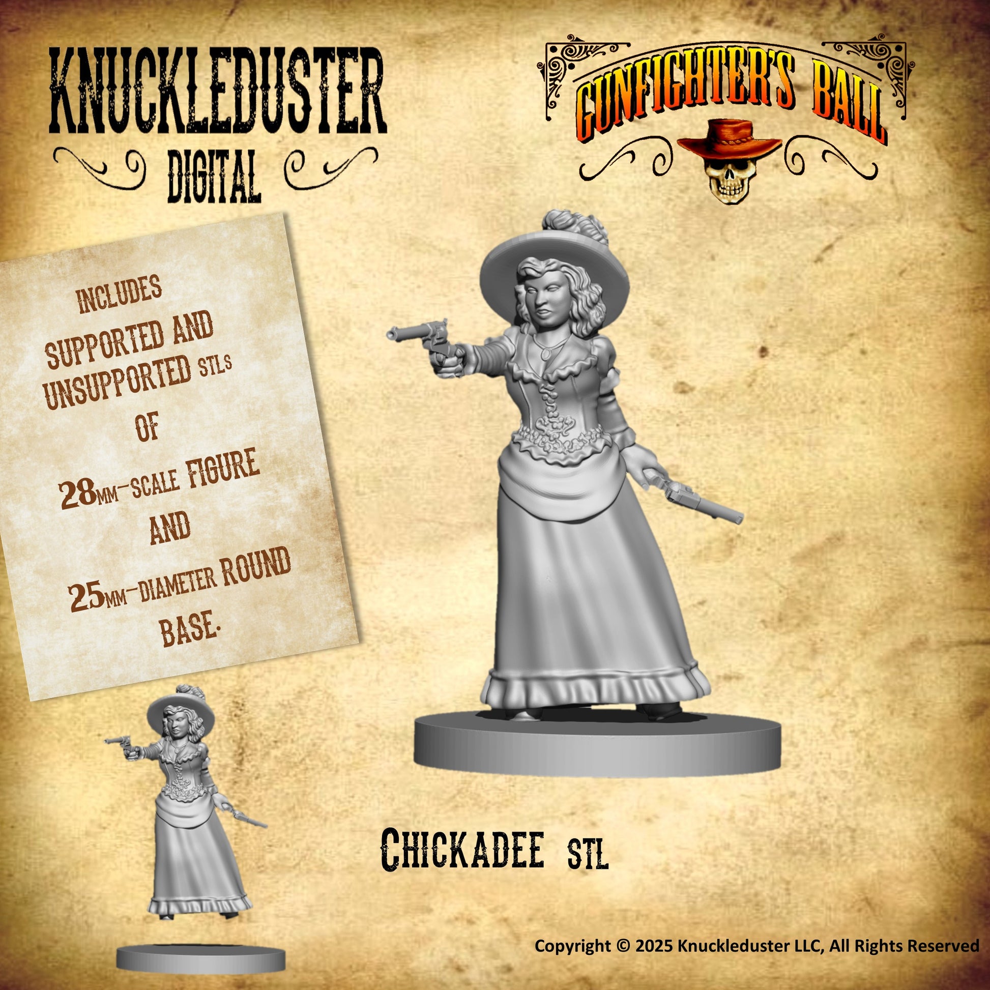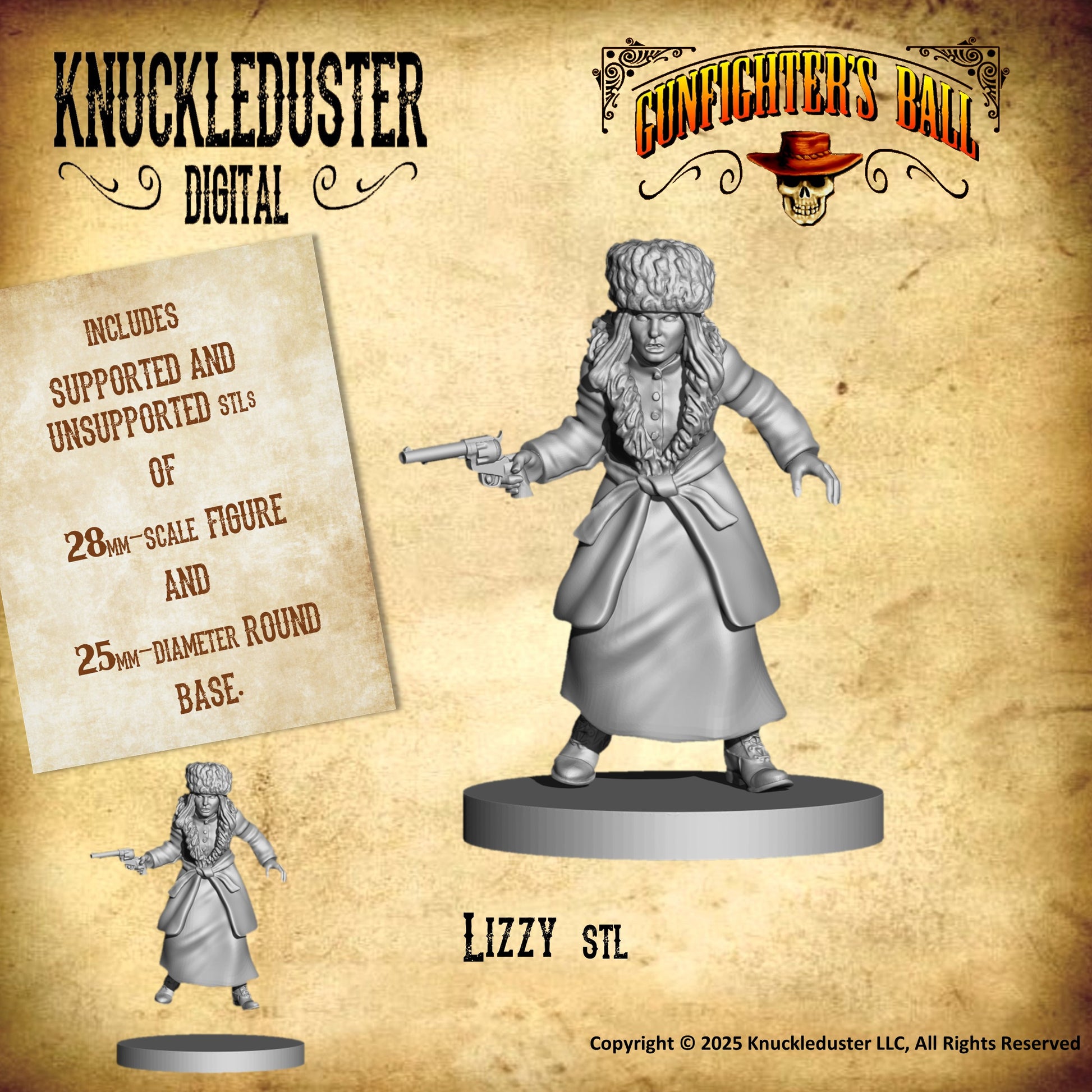 Make them any size you like, but the files are setup in the Gunfighter's Ball scale of large-28mm.