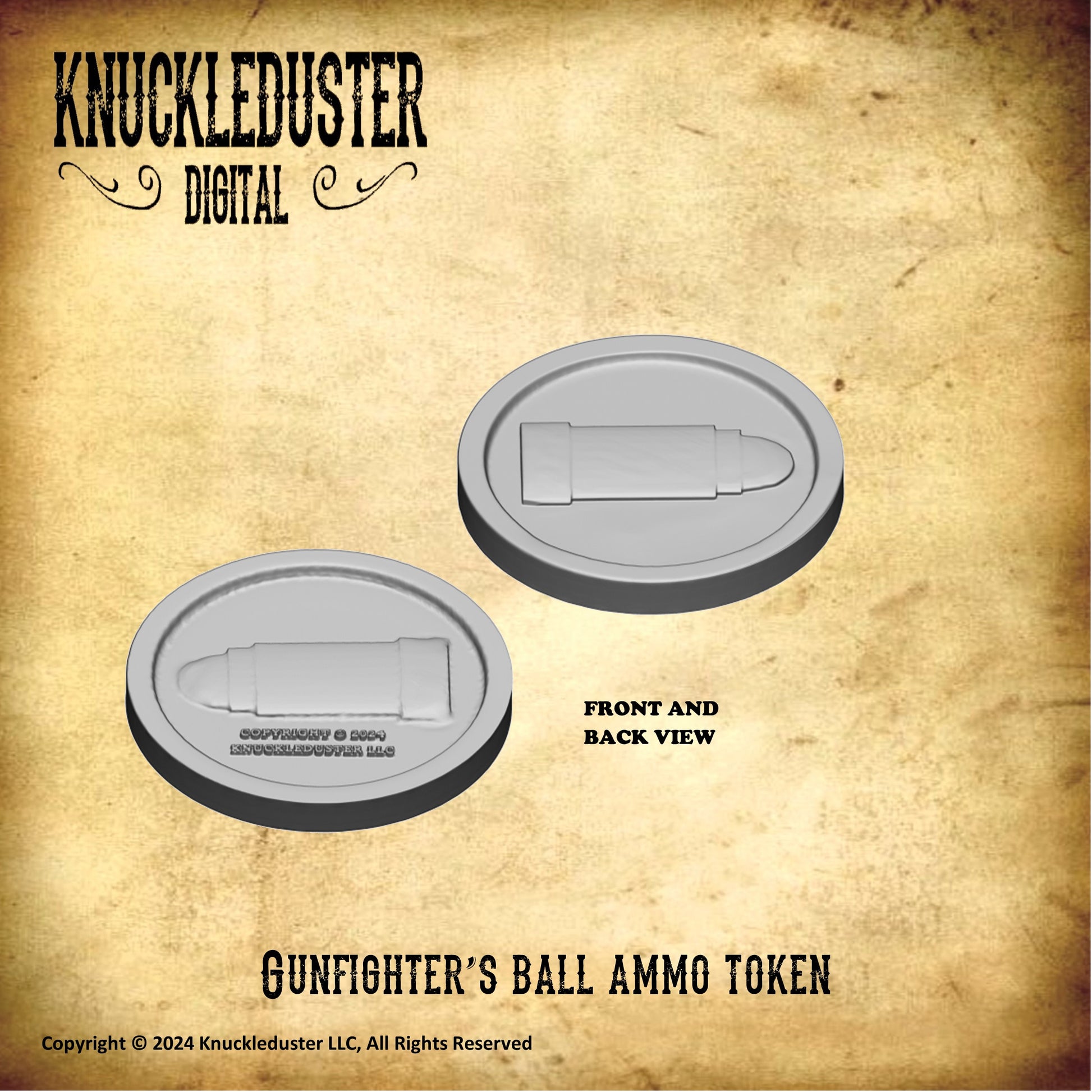 Print up a pile of these tokens and use them to keep track of ammo in any wild west shootout game.