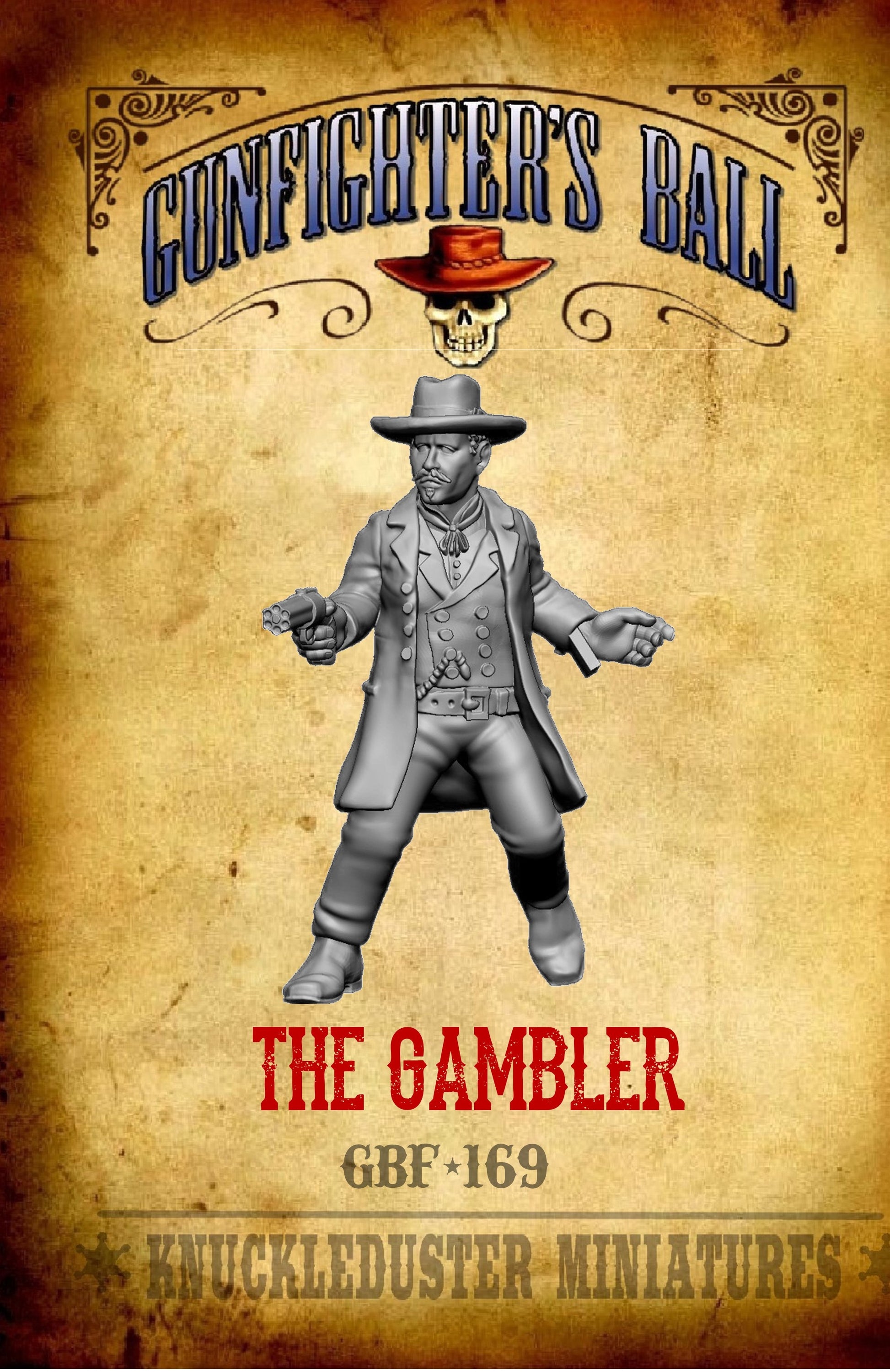 A gambler with a pepperbox and cards falling out of his sleeve!