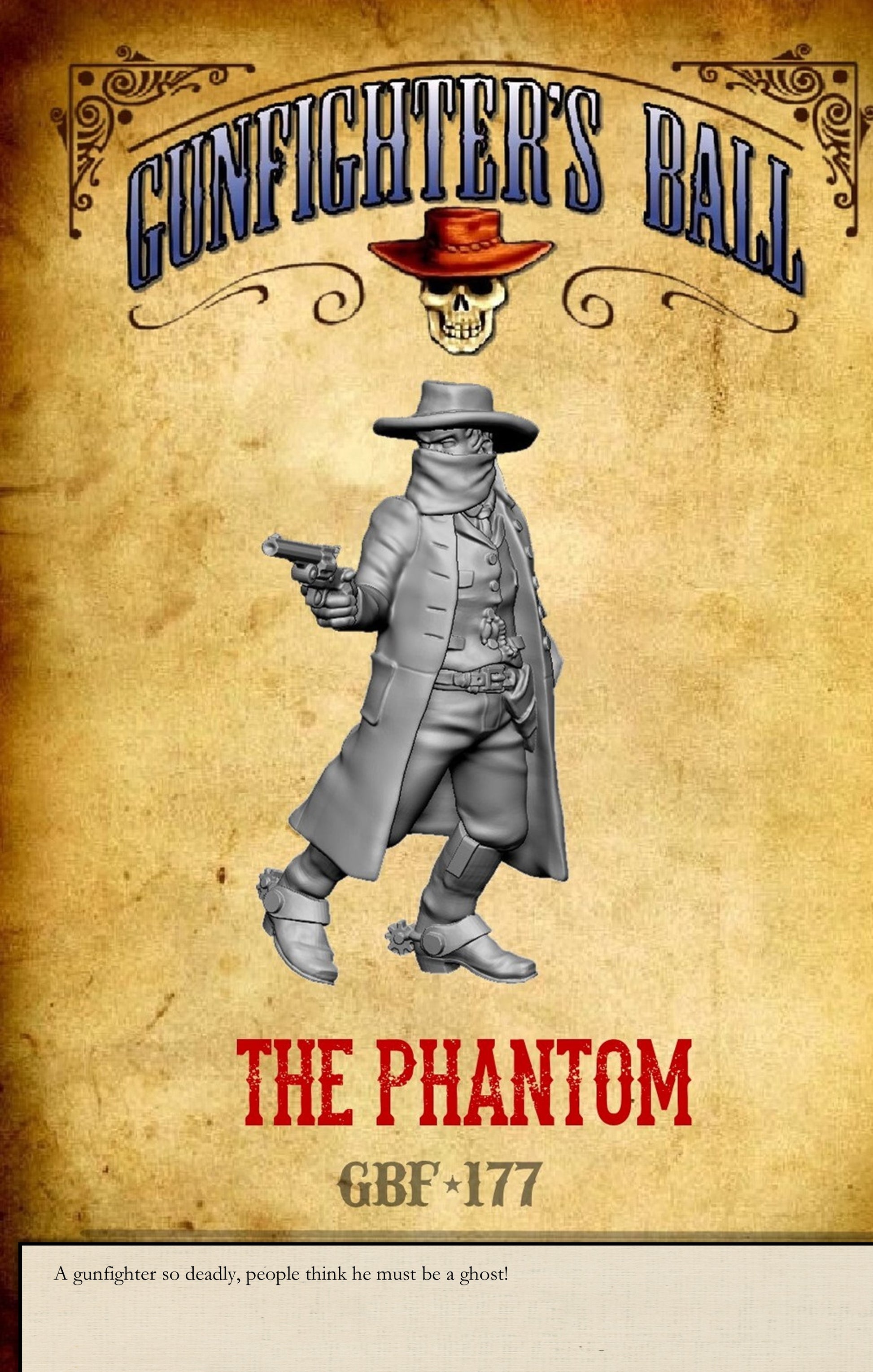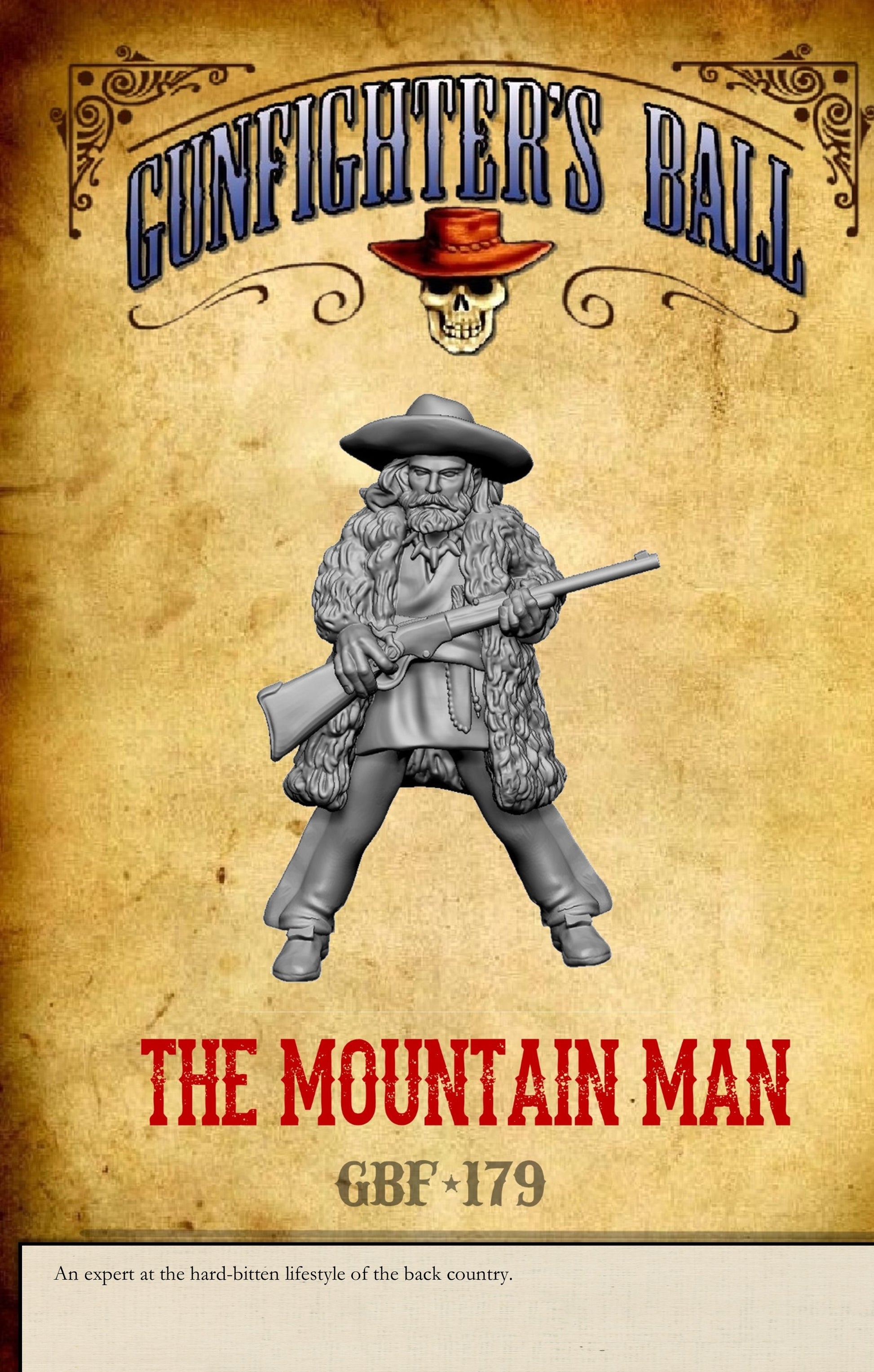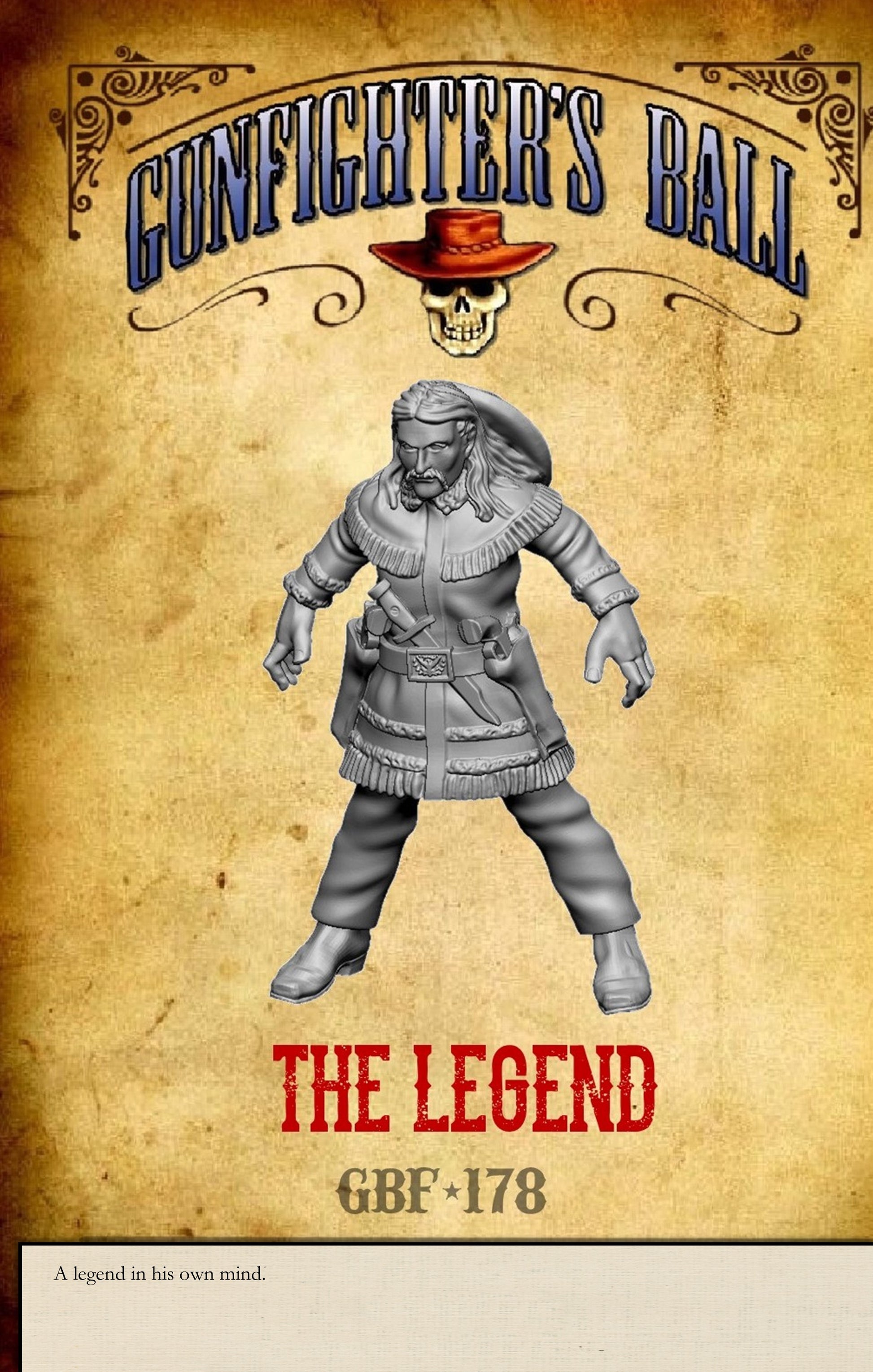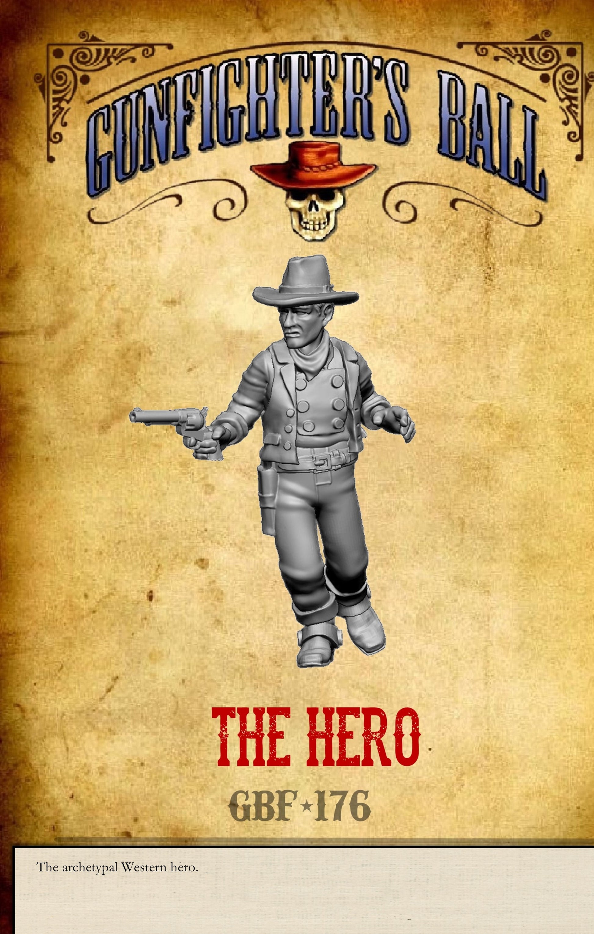 One of our variety pack of western characters. This one includes cowhand working for a cattle boss, a dashing hero, a robber called "The Phantom", a version of Hickok called "The Legend" taking up an heroic stance, a scruffy mountain man, and a rancher's daughter armed with a Sharp's Rifle.