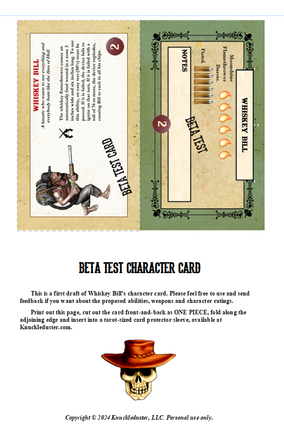 It takes some time to develop character cards. Using our beta test character cards you can start using your new figures right away. Test out the proposed abilities, ratings, and weapons and send your feedback to us so we can improve upon them before their final release.